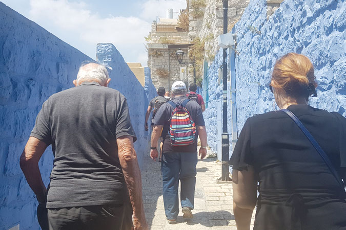 במלון "רות", לשעבר "רימונים", שלאחרונה נקנה על ידי רשת "דן", פגשנו את זאב פרל, מורה הדרך שלנו וגם היסטוריון חוקר, דור תשיעי בצפת. אני זוכרת אותו כראש העיר שלנו בילדותי. איש מרשים בעל ידע וחוש הומור וגם אבא של הזמר איתי פרל. פתחנו בארוחת בוקר במלון הצפתי הוותיק, מול רכס הרי מירון, נחל עמוד ונופי הגליל. מוזיקה הנעימה לנו את השהות. משם המשכנו ל"בית בט"ו" – מבנה אבן ששופץ לאחרונה. נגנים צפתיים קיבלו את פנינו בפיוט "לכה דודי", שכתב רבי שלמה אלקבץ וחכמי צפת הכניסו אותו לתפילה של קבלת השבת. צפינו בחיזיון אור-קולי. בהמשך, נחשפנו גם לבית הספר למוזיקה שנמצא בסמטאות צפת ומשם, פסענו בקריית האמנים, בין הגלריות הרבות ליודיקאה, ציורים של אמנים צפתיים ומבחר חפצי אמנות.