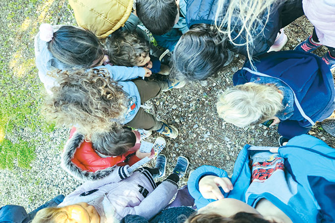 "במפגש האחרון, ביקשנו ליצור פינת טבע בגן – פעילות שמטשטשת את הארעיות של המקום ויוצרת בו שגרה חשובה שמלאה באוצרות המקומיים ובשמחות הקטנות שהעיניים של כולנו מבקשות לקבל".