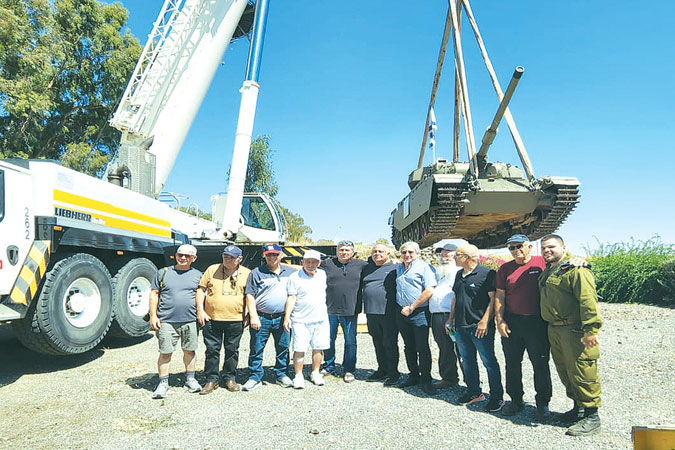 בתמונה: יואב לוי וחברי "כוח 'טייגר" המרוגשים, השבוע, במעמד העמסת הטנק. צילום: יקב "בזלת הגולן"