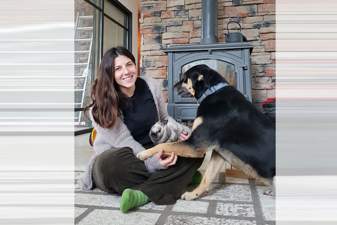 "יש לנו ילדה בת שנה, כלבה וארנב. בעלי החיים הם חלק בלתי נפרד מהבית שלנו. הם מסתובבים חופשי ומשחקים עם הילדה.