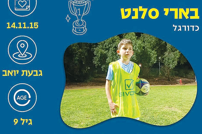 ספורטאי השבוע של מחלקת הספורט במרכז הקהילתי גולן הוא בארי סלנט, כדורגלן בן 9, מגבעת יואב