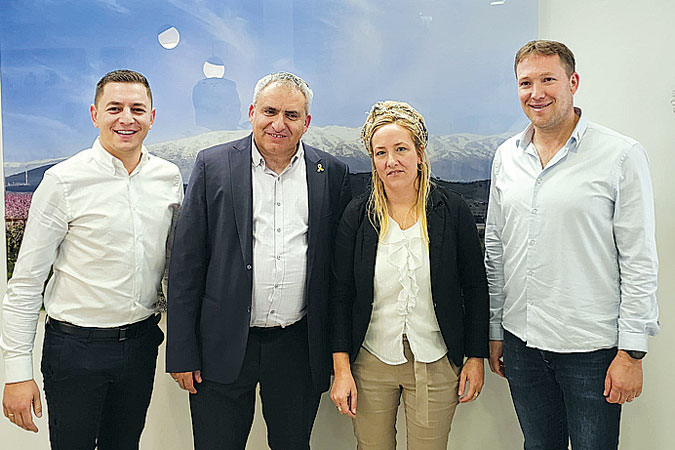 מחויבים לגולן – השר זאב אלקין ואלוף במיל' אליעזר מרום (צ'ייני) ביקרו ב"מכון שמיר למחקר" בתמונה: אורי קלנר, דינה גלעד, השר אלקין ויהודה דואה. צילום: דוברות